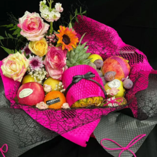 【紫色浪漫】紫色玫瑰花束阳光 玫瑰混搭水果礼盒(工艺繁琐, 需提前预定哟)