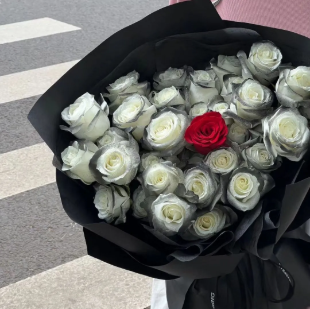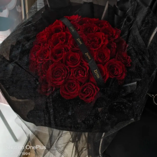 【温柔】33枝红玫瑰网红黑纱 花束