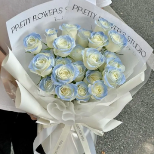 (遇见你遇见爱)99朵碎冰蓝 白色蒙纱款花束