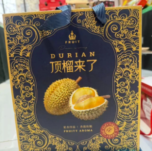 【顶榴来喽】高端礼盒内含精 品金枕榴莲一只约4-5斤/箱水 果礼盒